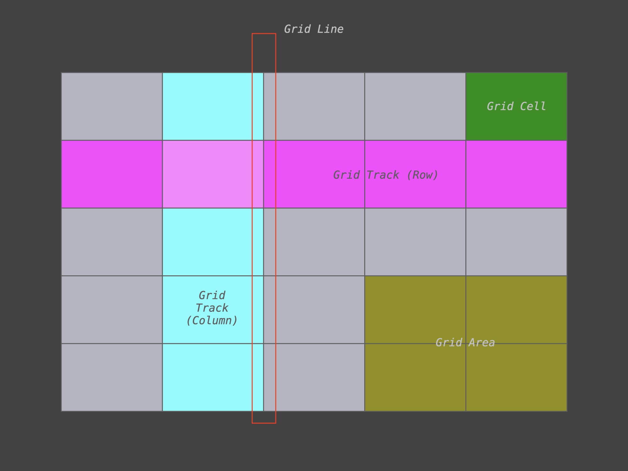 Cell: The intersection of a horizontal and vertical track. This is different from a grid item—the cell is the spot/placement, the item is the actual element—since as you’ll see, you can position items in an arbitrary cell.